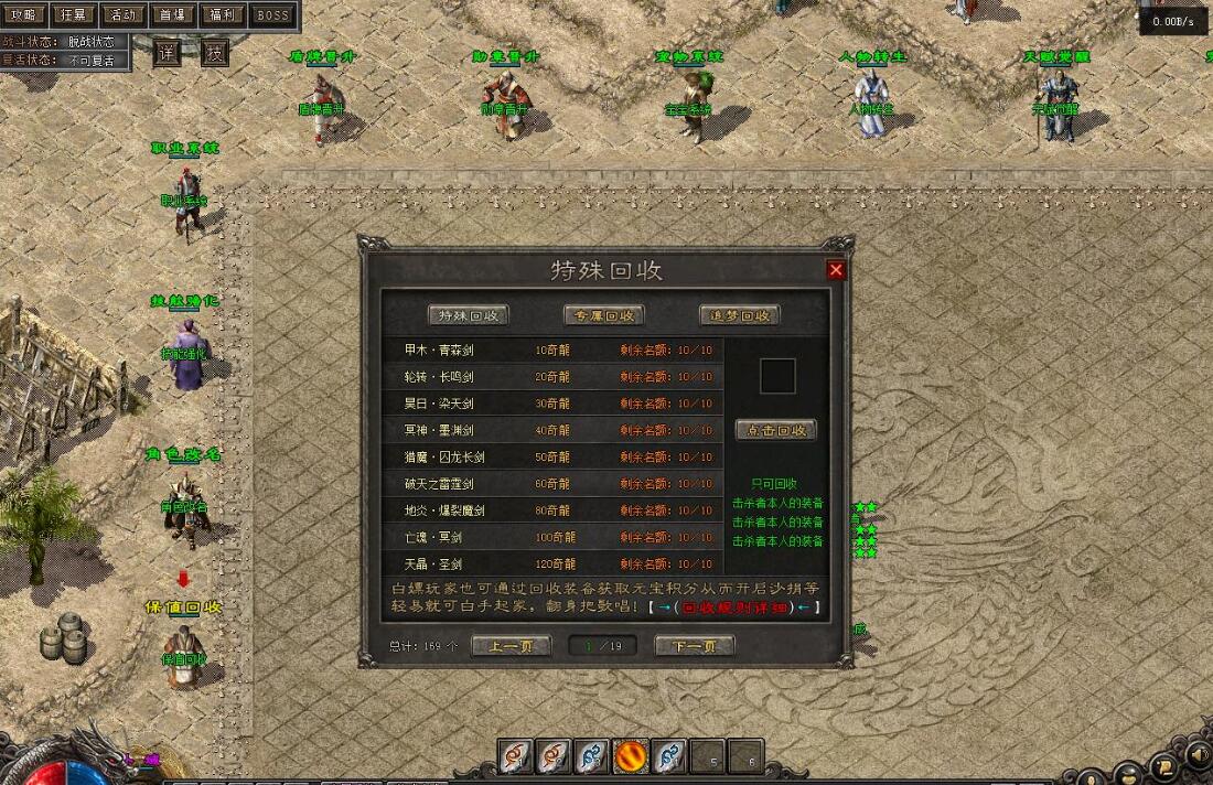 BOSS挑战:前往玛法传承地击杀BOSS,有几率获取前期神器。