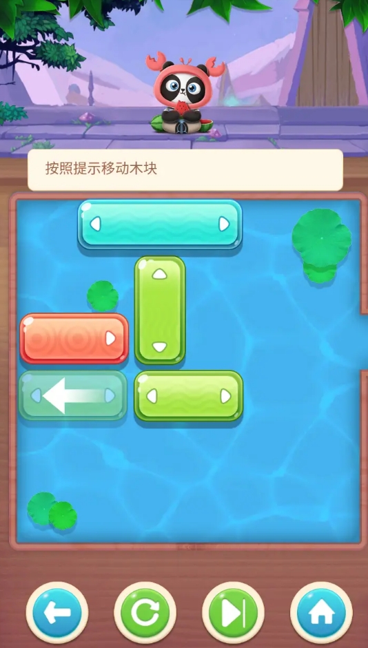 此作与停车类作品有异曲同工之妙,都需要将目标方块转移出格盘内。游戏中的障碍方块只能沿固定方向移动,玩家需看好各方块的移动方向和规划好它们的移动顺序和位置,确保目标方块能顺利地被转移到出口。当找不到将目标方块移出的关键解法时,可以使用提示来协助自己理清思路,若失误了还能一键完成关卡的还原。