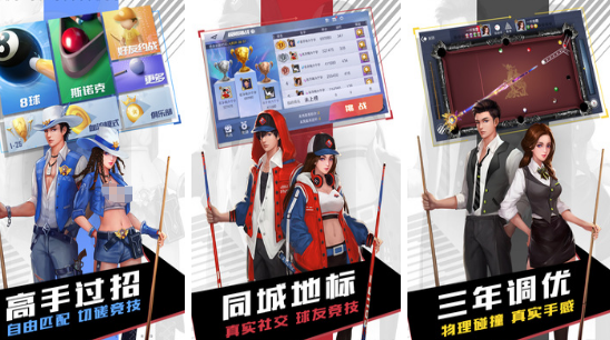 3d真实画风,体验经典八球斯诺克闯关等特色模式,有独创的血流台球玩法,与全球玩家共同同台竞技自由切磋,超级出色的引擎设计高度还原真实台球打击手感,通过屏幕控制台球的方式完成走位,快速连杆入袋花式炫技都能在这里呈现,有机会一杆清台迅速封神。
