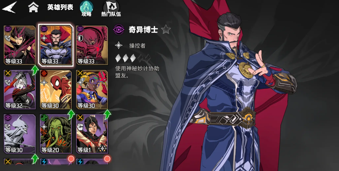 以上就是关于漫威秘法狂潮中奇异博士的详细玩法解析。他不仅能提供高额群体治疗,还能赋予队友攻击力加成、驱散减益状态并具备拉条类辅助功能,综合表现十分全面。新人玩家在获取该角色后应重点培养,合理配置装备与队友组合,充分发挥其战场枢纽作用。