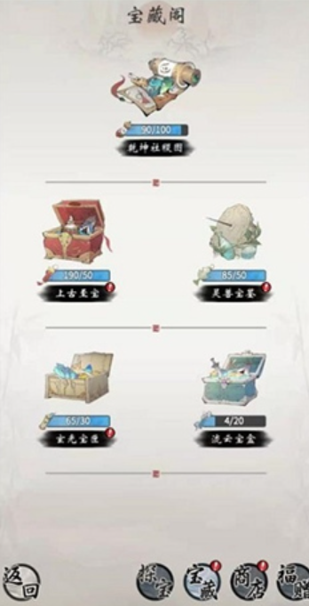 通过各类挑战积累资源后,玩家可前往宗门宝藏阁进行兑换。消耗灵石可换取天机石与宝藏阁碎片,这两项关键道具可用于解锁藏宝图、激活稀有古宝,进一步提升修为实力。