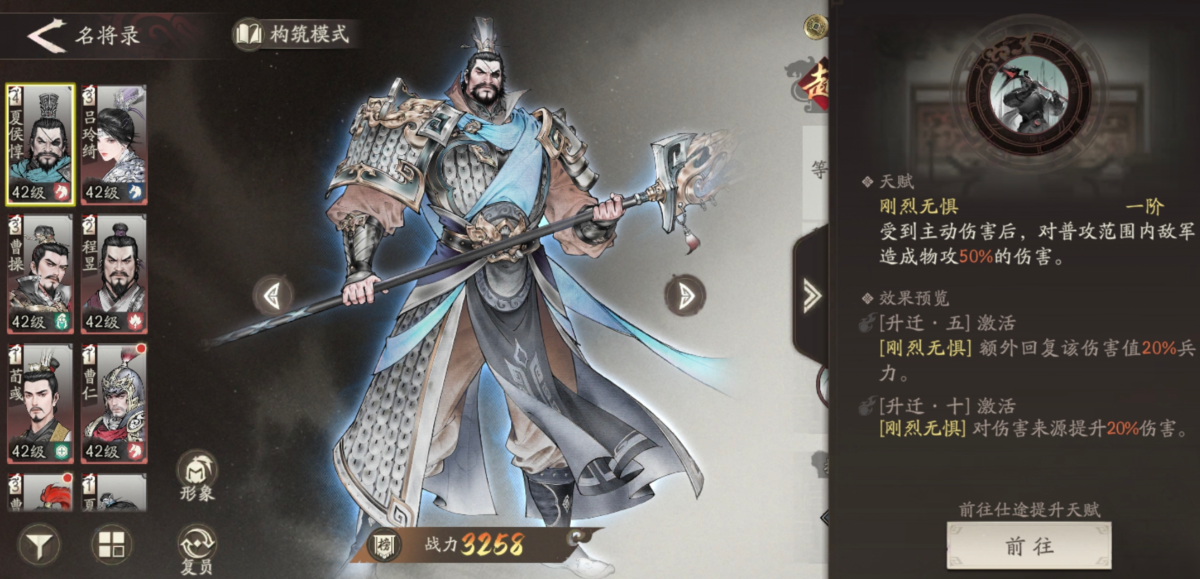 第三个推荐的角色是曹洪。作为近战型角色,他的血条和防御力都相当厚实,并且每个回合都可以自动恢复兵力。他的被动技能使得敌人在结束攻击后会立即触发追击效果,这样队伍的整体压制能力和续航能力都会显著增强。