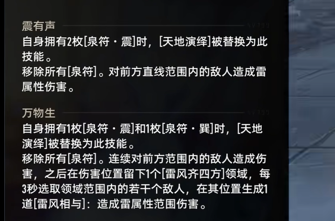 止流的核心技能“解天机”是她的招牌技能。通过点按和长按来获得不同的符牌效果。点按时,她会获得“全符阵”,这张符牌可以造成150%的雷伤,非常适合打BOSS;长按时,她会获得“全符训”,这是一个增益符,能给全队增加24秒的伤害BUFF。你可以根据情况选择不同的技能组合来打出最大的伤害。如果你手里有两张符,能触发她的大招“正有声”,这时候的单体伤害会非常高。而如果你手上有两张“全符训”,则会触发“天地鸣”,虽然伤害不高,但能够给全队提升30%的技能伤害,适合用来为后续的技能叠加状态。至于“全符阵”和“全符训”的组合,触发的“万物生”技能是大范围的AOE攻击,适合清理大批怪物。
