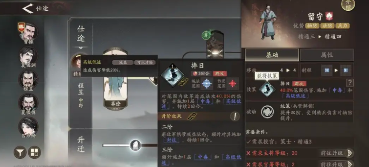 相对于其他技能效果,程昱的天赋机制较为强势。核心技能包括单点伤害和刚毅状态,刚毅状态下物理和法力防御各增加1.3倍,代替法力攻击。升级后,该技能可造成混乱效果,敌人反击时无法释放技能。满级后可获得额外诡谋效果。