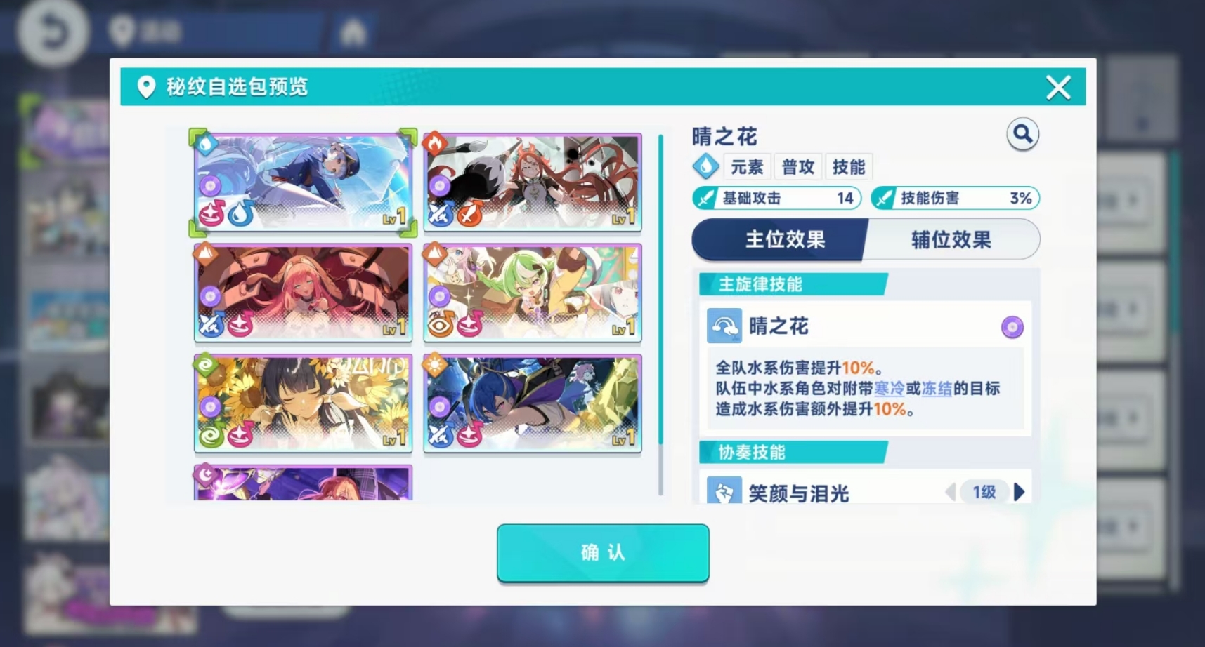 当玩家将所有70项小任务都完成后,便可以在启明计划的任务界面里领取终极大奖——自选虹彩秘纹。可选的秘纹均为常驻池秘纹,共有七张。玩家只能选择一次。在选择时,可以预览所选秘纹,然后再决定要选哪一张作为自己的奖励。通常来说,玩家可优先考虑选择与自己常用队伍同系的秘纹,以此来强化常用队伍的作战能力。但若是玩家已经拥有了常用队伍的秘纹,可以考虑选择其他未曾拥有的秘纹,以使自己在后续组建不同体系队伍时不缺虹彩秘纹可用。切记不要重复选择自己已有的虹彩秘纹。