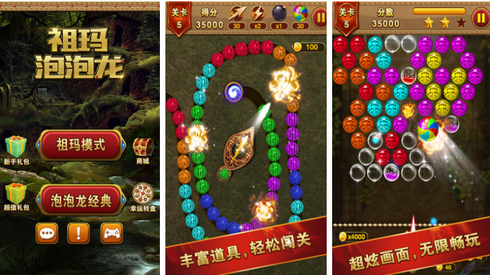 《祖玛泡泡龙》是一款经典的消除类闯关游戏,玩家需要将小球球排列整齐并射击消除,直到它们到达终点。虽然这款游戏的难度较低,但怀旧的画面和多样的道具增加了游戏的可玩性。新手礼包系统也会随机分配给玩家各种实用资源。