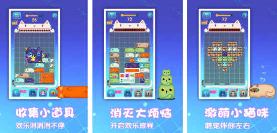 以消除方块为核心玩法,方块类型丰富多样。这些方块并非单调的正方形或长方形,而是由各种可爱动物组合而成。通过左右滑动的方式,玩家可以将这些方块填满整行,快速消除。每个关卡中的分数要求和规定都有所不同。
