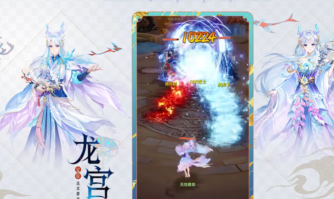 龙宫作为主打远程法术输出的职业,角色设计极具视觉冲击力,其核心能力源自于掌握龙族特有的元素法术,主要依托水与火两种属性进行战斗。水系法术注重范围控制和群体压制,能够有效限制敌方行动;而火系法则以瞬间爆发和持续灼烧效果见长,适合对单体目标造成连续重创。整体战斗风格灵活多变,兼具清场效率与点杀能力。