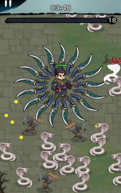 主打轻松氛围的割草类游戏,围绕角色的修行之路展开的,玩家在途中击败各类怪物,积攒成长所需的经验值,让自身实力稳步进阶。每次等级提升时,都能从多样选项里挑选适配自己的武功心法,游戏不仅打造了丰富多元的关卡场景,还构建了完善的角色培养系统,海量新奇独特的武功秘籍任大家搭配选择。在不同的场景地图中,可以尽情释放飞刀技能,操作方式简单易上手。