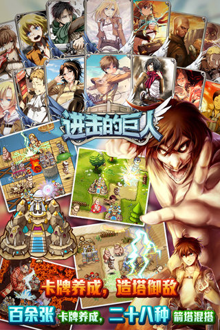 《进击的巨人(塔防)》游戏运用了丝丝不苟剧情发展路线,原封不动地呈现了动漫中描述的奇异世界。游戏中每个人的任务就是把这些巨人赶出人类的家园。配置了丰腴多样的战斗场地,都具有着令人紧扣心弦的战斗情节。而且在巨人的种类上,游戏同样进行了史无前例的多类型设计。