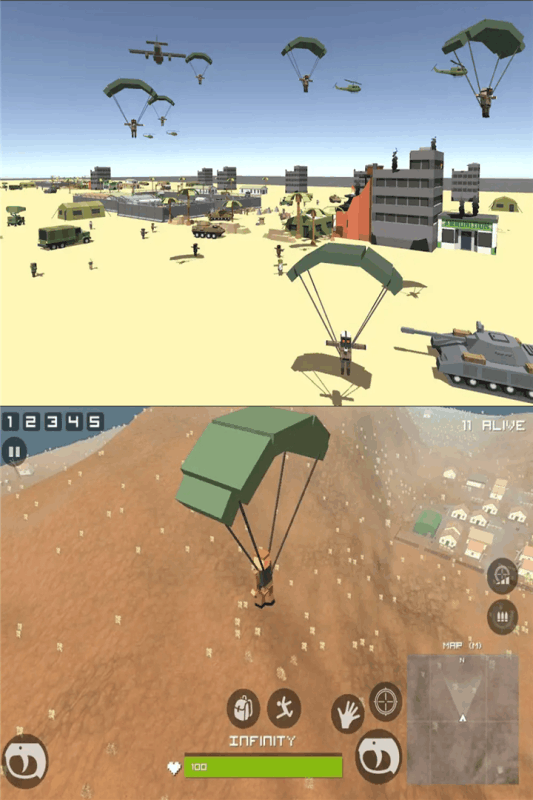 这是一款三维射击模拟类型游戏,各式枪械你都能自由选用,与常规的枪械对战游戏有所区别,在游戏中玩家能够使用的武器会更加丰富,玩家不仅可以使用普通的枪械,还可以使用喷火器、甚至是加农炮以及坦克等。游戏采用了动态设计机制,玩家在游戏中不论是使用炮弹或者是其他类型爆破物,都能够对地形中的各类物品进行破坏,玩家必须要考虑好如何选择掩体才能确保安全。
