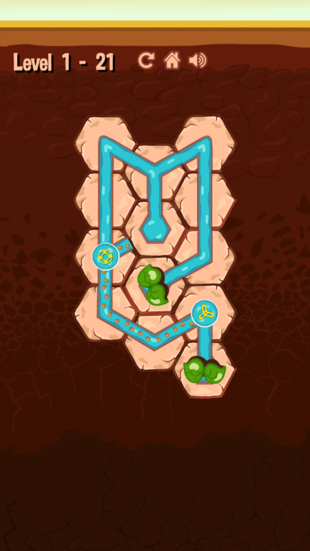 《水管大师》针对每个水阀设计的位置都是随机的,在关卡中,游戏设计的管道部件都是形态各异的。真正的解法只有一种,我们必须去探索出更为合情合理的连接方式。游戏还将众多新意盎然的机制融入了其中,比如隐藏的管道弯头等等,每一个部位成功的连接,都进行了慢镜头的动画以及相得益彰的声音展现。