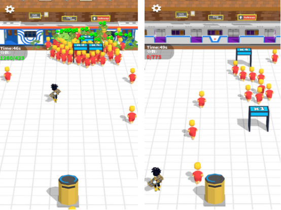 这是一款采用卡通风格制作的地铁手游。玩家将成为一名地铁售票员,通过控制小球生成门来赚取更高的收入。然而,游戏中也存在着炸弹人的威胁,玩家需要做好防御工作。