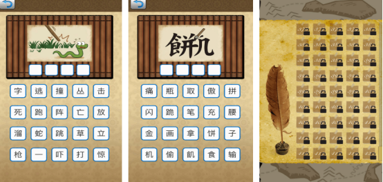 数百个关卡组合而成,也是男女老少皆宜的游戏,关卡中的图片都特别逼真,每次一看到图片就可以立即猜出正确的成语,比如有的代表的是画饼充饥,有的是打草惊蛇等等。屏幕最下方会看到很多单个的字体组合而成,每个字体看起来都有不同的寓意,但是只要将正确的成语寻找到之后,就能够和图片相呼应。