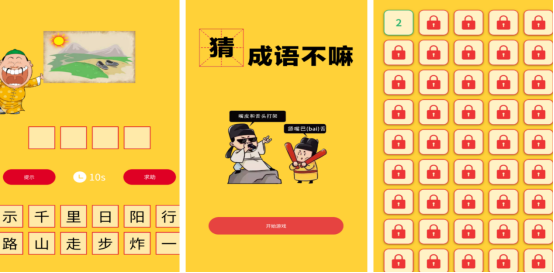 海量关卡组合而成,这些关卡也会不定期更新,最主要所有的难度都是循序渐进的,屏幕也会被分为几个不同的区域,比如上方会看到特别真实的图片,而中间又会看到4个空白的方框,需要填入正确的汉字,而下方又会有单个的汉字,大家需要结合图片给出的寓意猜出正确的成语,每个关卡都有10秒钟的规定时间,必须在规定时间之内快速回答。