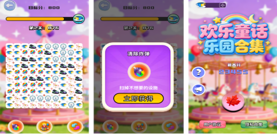 以经典的童话元素为基础,增加了创新式的消除玩法。游戏中包含大量的关卡组合而成,每个关卡的任务要求都有很大差异。例如,每个关卡都有规定的目标分数,玩家需要在色彩缤纷的游戏世界中仔细滑动屏幕,通过完成消除任务来获得相应的分数奖励。每次消除过程中还可能获得意外惊喜,比如清除炸弹道具,扫除所有不想要的设备等。