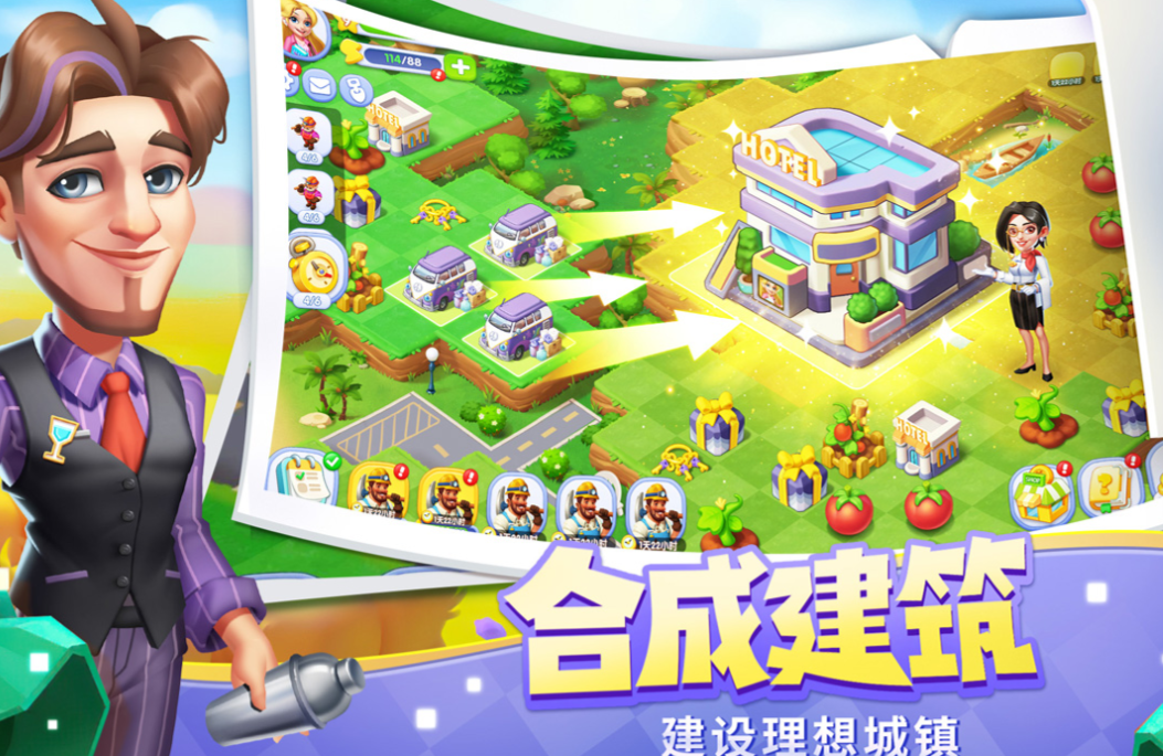 这是款能让大家合成各种建筑进行经营的单机合成手游,将城镇建设和合成机制完美结合乐趣无穷,欧美卡通的美术原画带来的视觉享受更加硬核,一系列很好玩的合成互动模式也充满创新,各类建筑在你的帮助下合成升级会带来更高成就感,地图设定更大可不断开发然后建造各种华丽的建筑物。