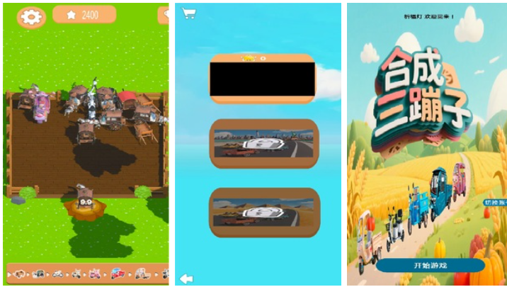 这是款气氛营造很搞笑的玩家自制合成类手游,合成目标就是农场中那些很常见的载具,三蹦子和拖拉机等载具合成起来很自由也很有意思,你也将进入不同的农场地图上合成这些道具完成任务,游戏展现出森系唯美的背景大幅增加了游戏的沉浸感,很多的农场动物会跟随玩家一起合成各种载具哟。