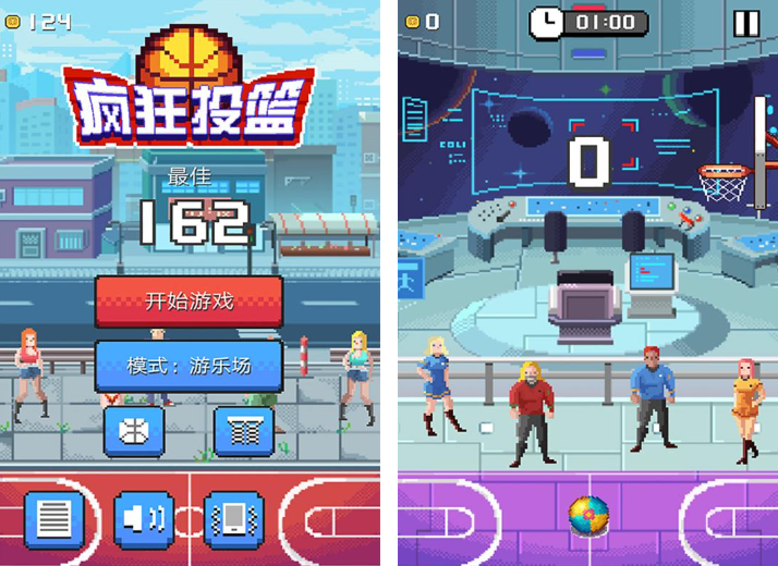 最后是《疯狂投篮手游版》,这是一款专注于投篮的篮球游戏。游戏采用像素画风,操作简单易上手,只需要用手指滑动即可控制角色进行投篮。虽然不考验玩家的操作技巧,但非常考验玩家的球感和投篮角度、力度的控制。游戏采用闯关形式,通过不断尝试和调整,玩家可以尽可能多地将球投入篮筐,获得高分。