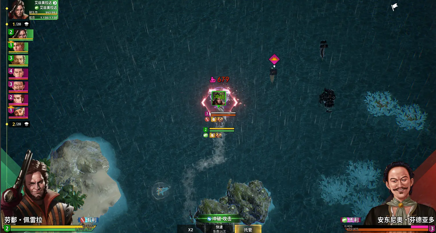 战斗正式开始后,系统会将您带到一个专属的战斗地图。在这个地图上,舰队和敌舰分别站在不同的位置,进行回合制对决。每个回合的顺序是根据舰队的机动力决定的。战斗中,船员的战斗效果会自动触发,效果越强,胜利的可能性越大。您可以通过菜单查看这些效果,以便更好地制定战斗策略。