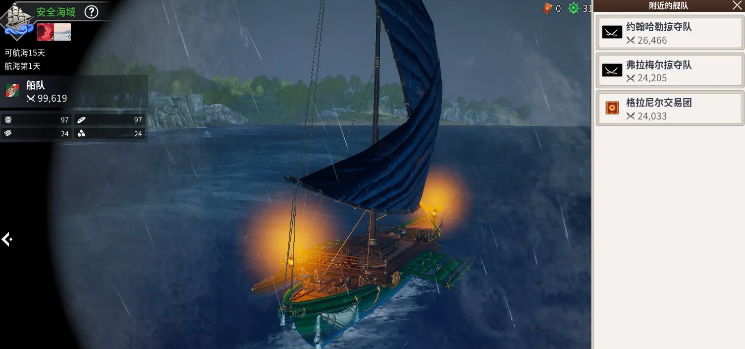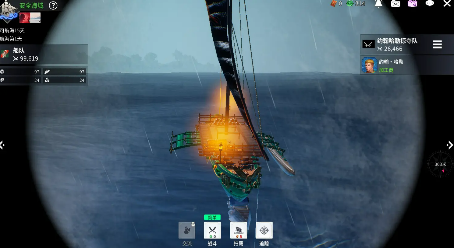 首先,当您在航行过程中看到敌舰时,可以点击船只进入观察模式。这里可以看到敌舰的基本信息,如实力和胜算等,有助于您做出战斗决策。点击战斗按钮即可宣战,准备开始战斗。