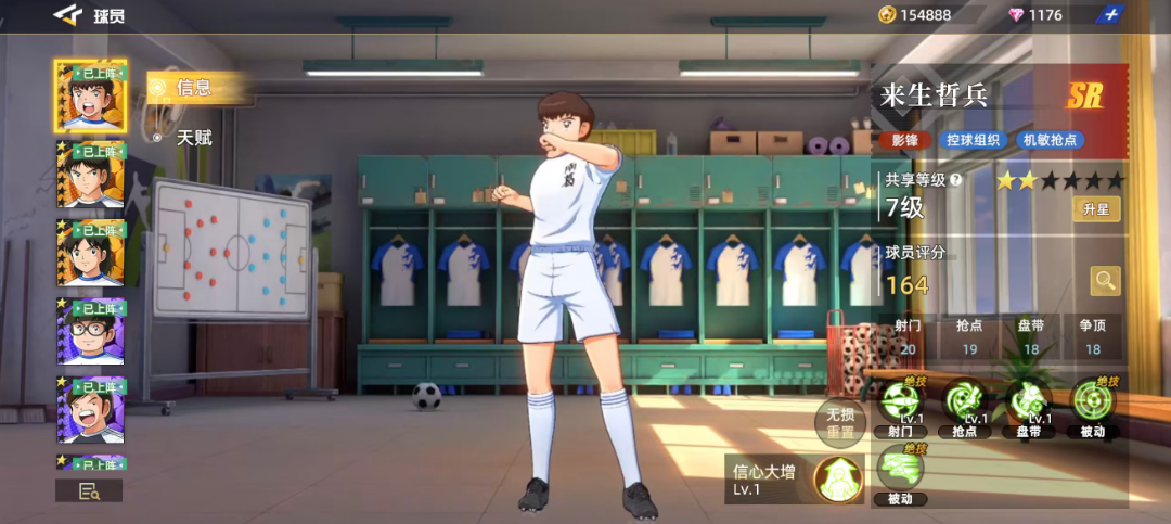 来生哲兵的被动技能如弹无虚发和灵敏领域,均有助于提升球队的整体表现。最后,信心大增技能虽然持续时间较短,但能在关键时刻发挥巨大作用。