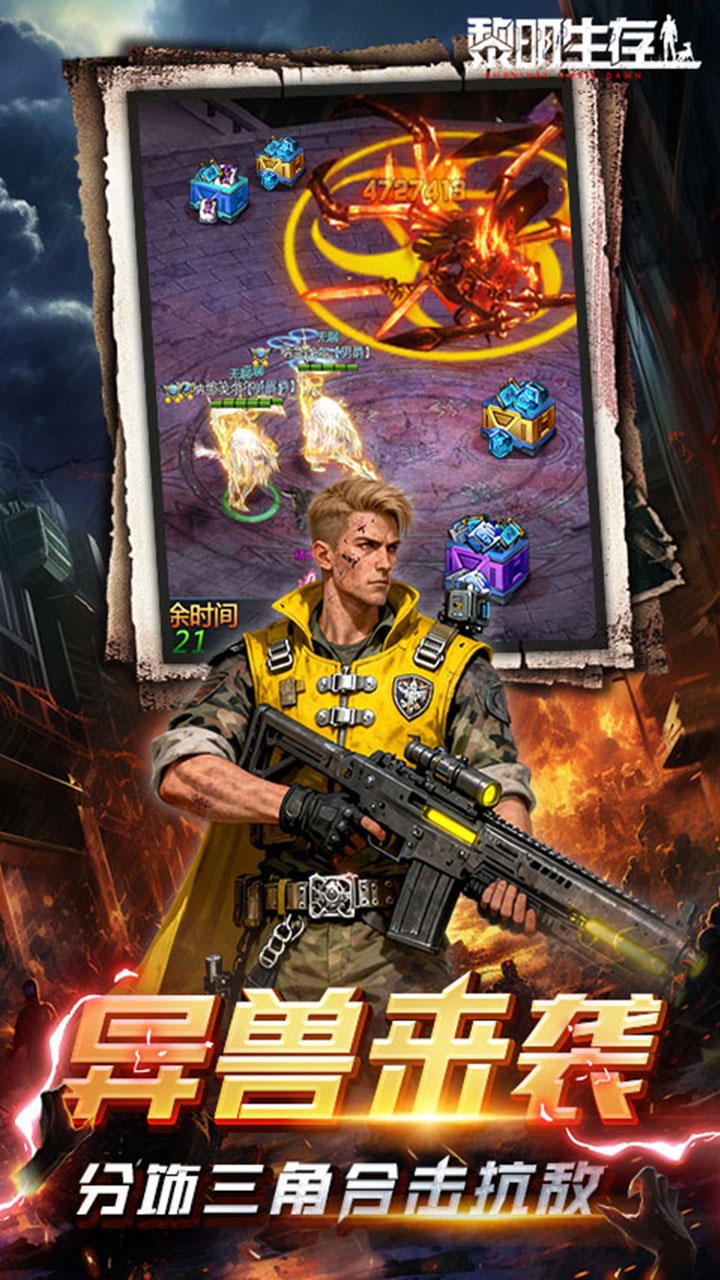 3.5折科幻废土题材手游《黎明生存》火爆上线!上线免费赠送vip10,还有绝版羽翼、守护机器等炫酷实用的道具等你来拿!游戏内置副本小助手,一键扫荡省时省力!游戏通过精彩的主线剧情、炫酷的技能特效、有趣的特色玩法,给玩家呈现一个拥有庞大世界观的真实废土世界!玩家将磨炼技能,锻造装备,召集伙伴抵御变异生物的威胁,生存下去,为人类最后的黎明而战!
