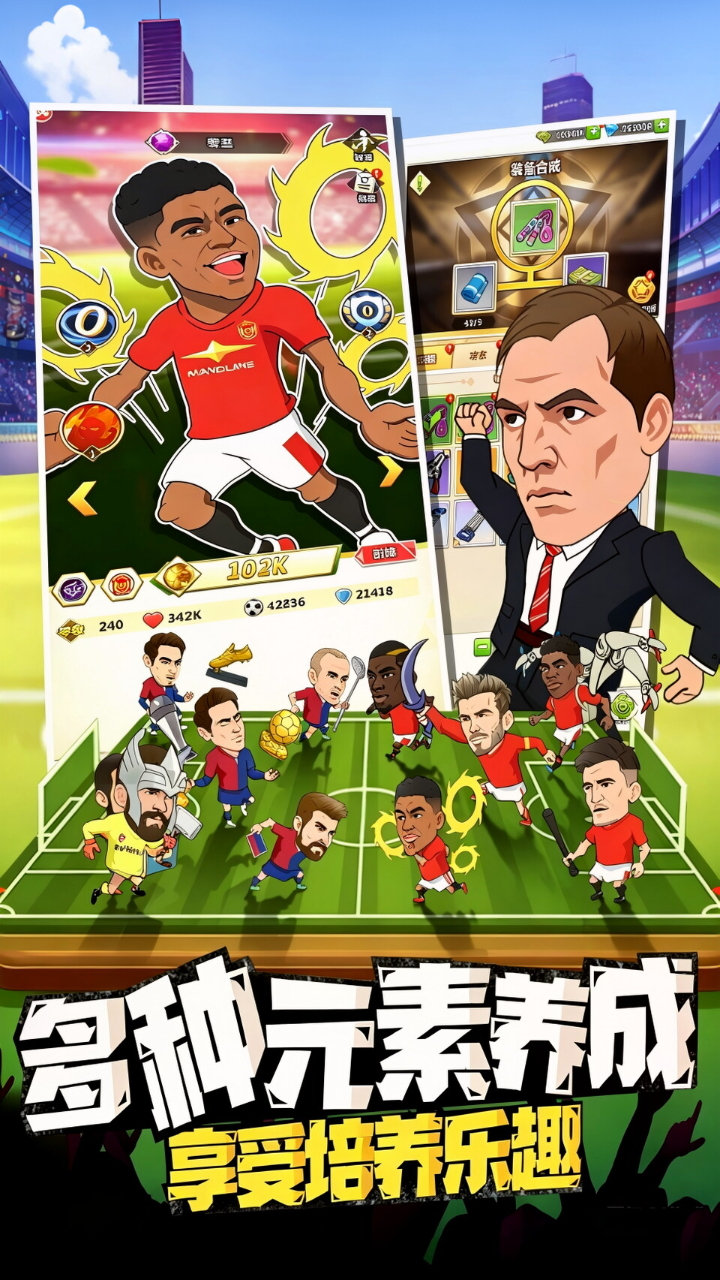 《传说大陆》是一款专为球迷打造的Q版足球题材放置卡牌手游,以全新卡通演绎方式还原足坛传奇球星的赛场风采,搭配全场0.1折超低福利门槛,让你零压力打造专属豪门球队,圆梦绿茵之巅。游戏创新融合放置挂机与卡牌养成核心玩法,无需爆肝手操,离线也能自动获取推图、养成资源,上线一键领取即可轻松升级进阶;海量传奇球星全收录,自由招募养成,前锋、中场、后卫、门将全位置覆盖,搭配灵活的阵型战术体系,用策略逆转赛场战局,小白也能快速上手。在这里,你可以沉浸式体验俱乐部全维度运营,解锁特训室、战术室、球探中心等多元建筑,从青训培养到豪门运营一步到位;更有欧冠之塔、跨服冠军争霸赛、竞技场等丰富赛事玩法,复刻经典足坛名场面,与全球玩家同台竞技登顶绿茵王座。0.1折福利无套路拉满,海量钻石、顶级球星登录就送,不氪不肝,轻松玩转足坛!