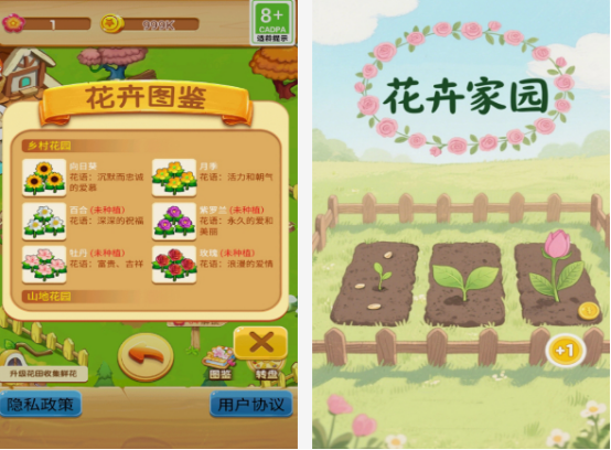 由于现实生活当中各种漂亮的花,能让人的心情变得愉悦,所以喜欢对花卉进行经营的,玩家也是比较多的,这款就是能进入花卉的花园里,无论是培养乡村里面比较常见的花朵,还是特别名贵的,都可通过不断的解锁种子以后种植到土地里。在经过了一些时期以后,花朵就能完成开放,了解每个花卉开放的过程。