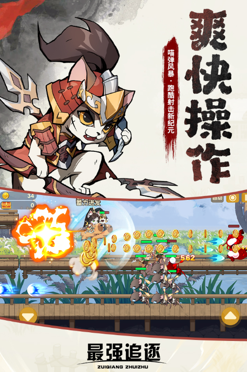 《最强追逐》是一款萌猫冒险游戏,玩家要带着一群特别萌的小猫穿越到不同的时代。在路上要小心机关陷阱,发射子弹攻击敌人。有三条跑道供选择,只需滑动屏幕即可操作。让小猫跳跃或滑行,蓄力释放更强大的技能。边跑边打,关卡的陷阱和道具随机出现,不会重复,还可以与全球玩家一起排名,赢取限定皮肤。