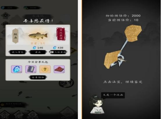 将钓鱼和修仙结合在一起,在玩的时候,每个玩家都能享受与众不同的特色内容,通过在融入了浓郁的古代环境,乘坐的普通的木船,进入到有很多中鱼儿的世界当中,完成抛竿以及钓鱼的任务。而想要顺利完成修炼的话,也能使用自己获得的鱼儿,兑换法宝以及诸多修炼时的秘籍,这样在修仙的过程当中,也会更顺利。