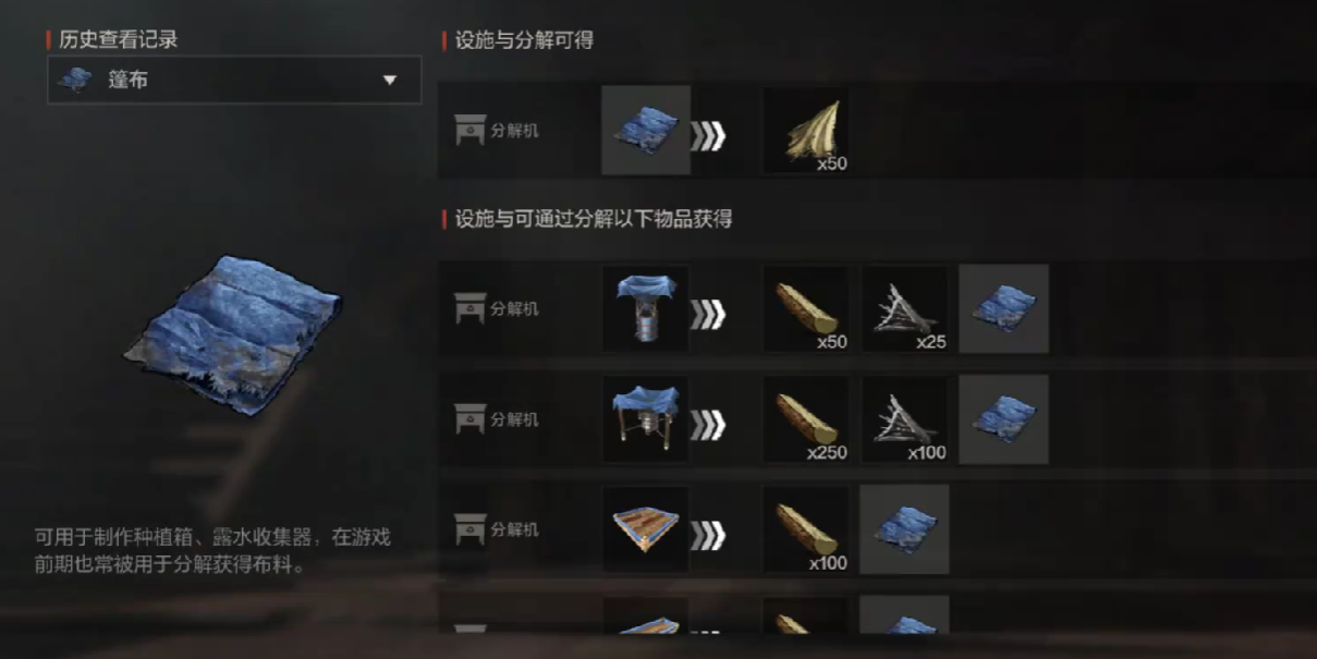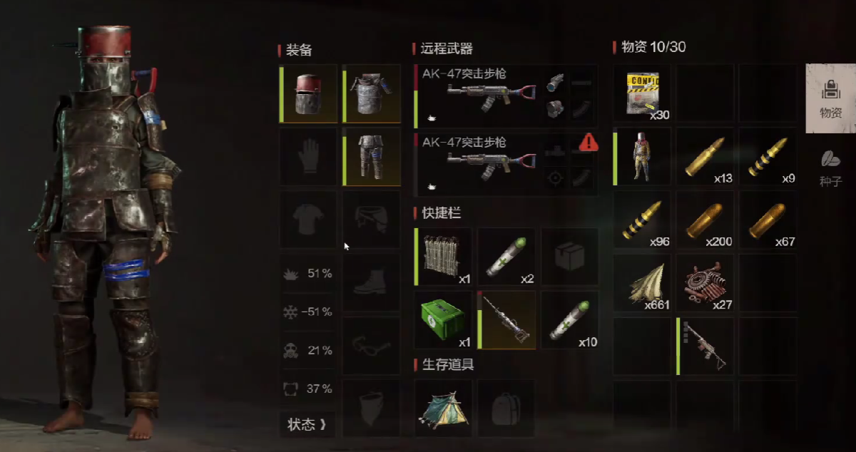 为了提升生存效率,玩家还需要制作外出时使用的精简背包,并携带高价值物品和紧急物资。随着科技树的升级,背包也可以升级为大背包和帆布背包,增加抗热属性以适应极端环境。