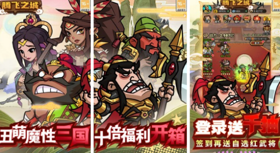 以三国历史为背景的开箱手游,融入卡牌收集、策略战斗等特色玩法。扮演三国时期的领主或者军阀招募名将发展城池最终完成统一天下的目标。其中所有三国武将设计的都非常滑稽,海量资源养成模式完全没有严重氪金的情况,即便你是平民玩家也能享受到优越的三国体验。