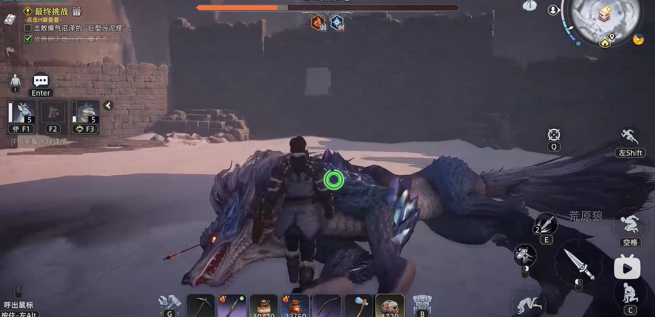 驯服山羊后,它将成为独有的坐骑,凭借其强大的冲击效果,可以在完成野外任务时帮助玩家撞碎各种坚硬的石块,提高收集石头的效率。无需再手动捡拾石块。驯服一个新的宠物,就相当于获得了一种新的力量加持。