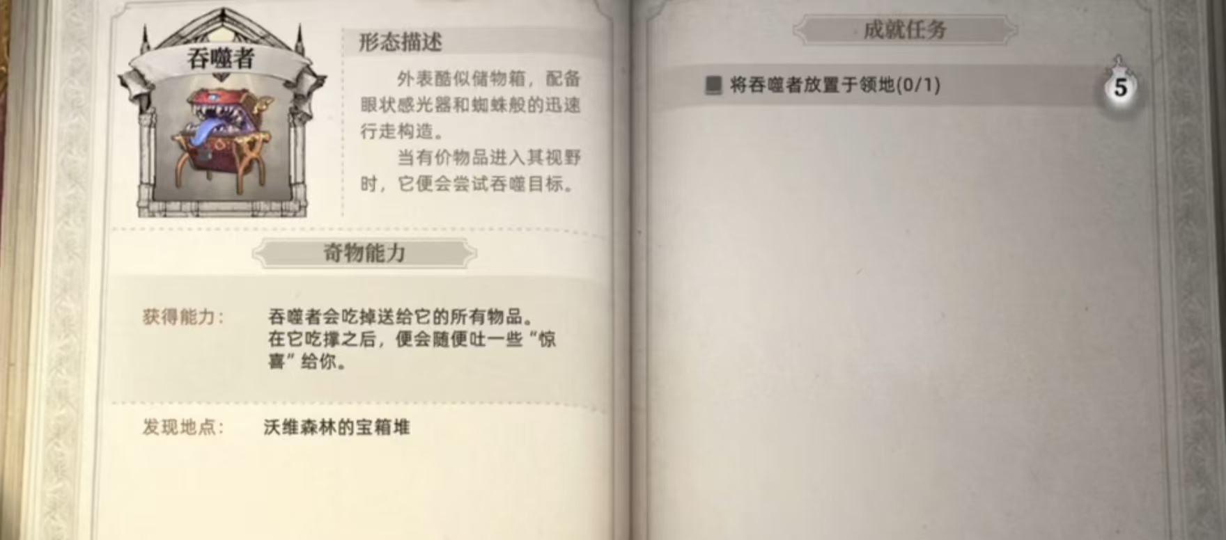 你需要迅速地跑开,顺便丢一些身上不重要的材料在地上,引导它一路往家的方向走。如果家离刷新地很远,可以在吞噬者附近搭建临时家园。成功将它带回家后,点击吞噬者旁边的“吸纳”,等上一段时间后,就可以成功获取了。
