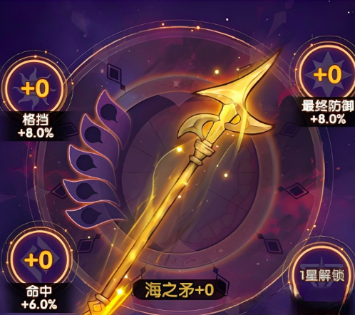 第二个圣物是海之矛,设有四个槽位,分别是格挡、命中、最终防御和最终攻击。通过宝石和升级材料的镶嵌,可以实现8~40%的提升效果。此外,如果将最终攻击和最终防御提升至最高,还能获得额外的格挡属性加成,击破效果也会有20%的提升。这个圣物适用于多阵容组合模式,不挑阵容,适合新手玩家自由搭配。建议新手伙伴们多多选择。
