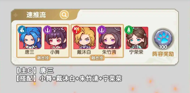 战斗过程中选择合适的队伍搭配也非常关键。这里推荐两组不错的搭配:速推流由唐三搭配小舞、戴沐白、朱竹清、宁荣荣组成;灼烧流则由奥斯卡搭配马红俊、白沉香、柳二龙、奥斯卡组成。这两个组合在主线推图和材料副本中表现出色,新手玩家可以考虑使用。