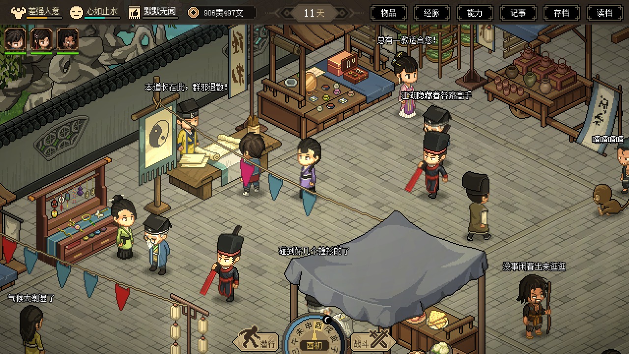 一个像素风格的武侠角色扮演手游,游戏以南宋初年为背景,同样是没有固定主线的开放世界设定,游戏有70多万字的庞大剧情文本,设计了上百种武功供玩家学习,而且引入了道德值这个设定,玩家角色所做的每一个选择都有可能改变自己的道德值,之后会决定玩家角色的正邪,进而影响玩家能招募到的武侠伙伴和最终结局。