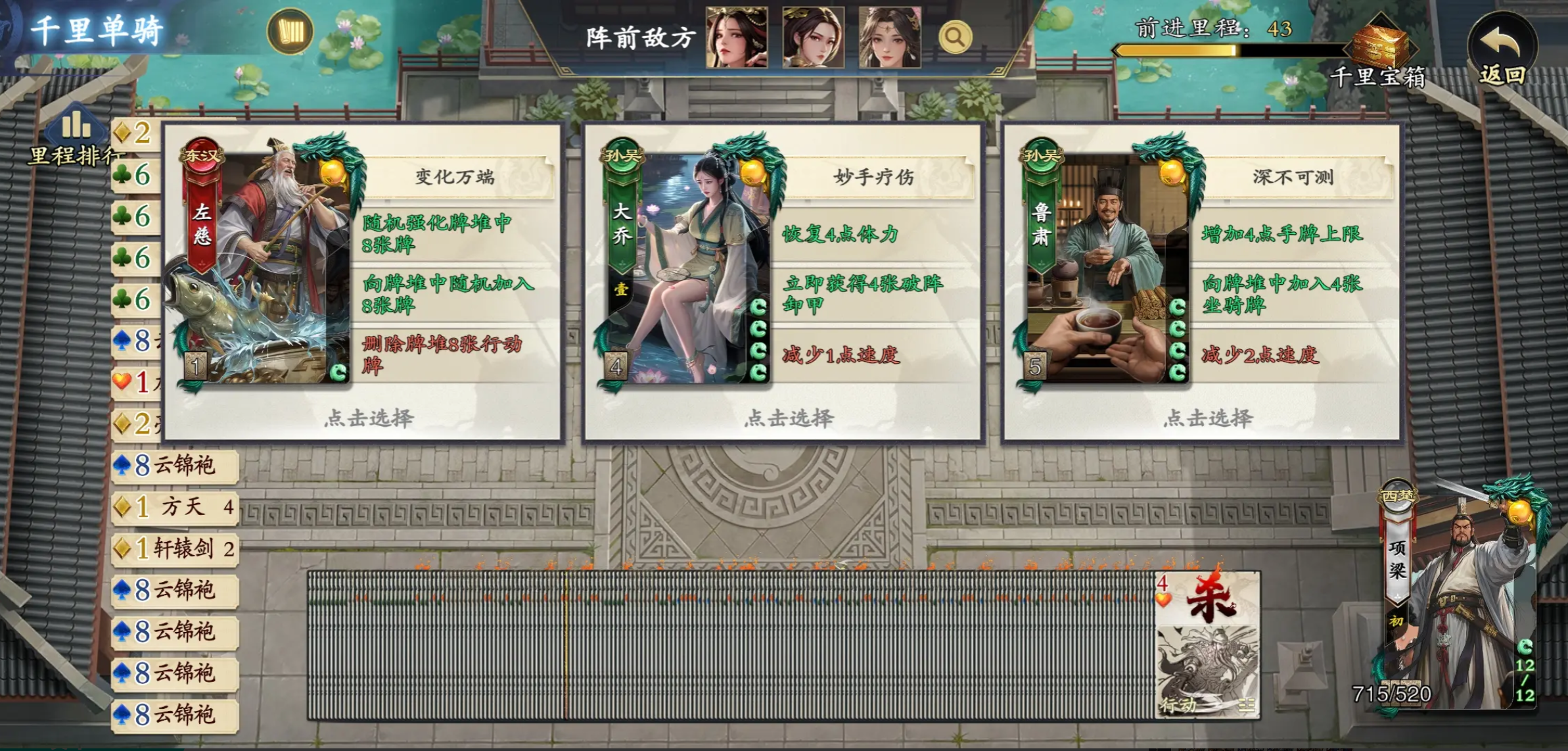 许多玩家在进入《名将杀》后,都会被“千里单骑”战役模式所吸引。然而,真正的挑战却常常让他们感到困惑。那么,有没有关于“千里单骑”的攻略呢?答案是肯定的。虽然这个模式看起来简单,但实际上却充满了困难。它不仅是三大核心战役之一,而且还涉及到资源调配、打法顺序和增益选择等方面的问题。本文将会用简单的思路和一些实用的技巧来讲解整个“千里单骑”的挑战玩法。