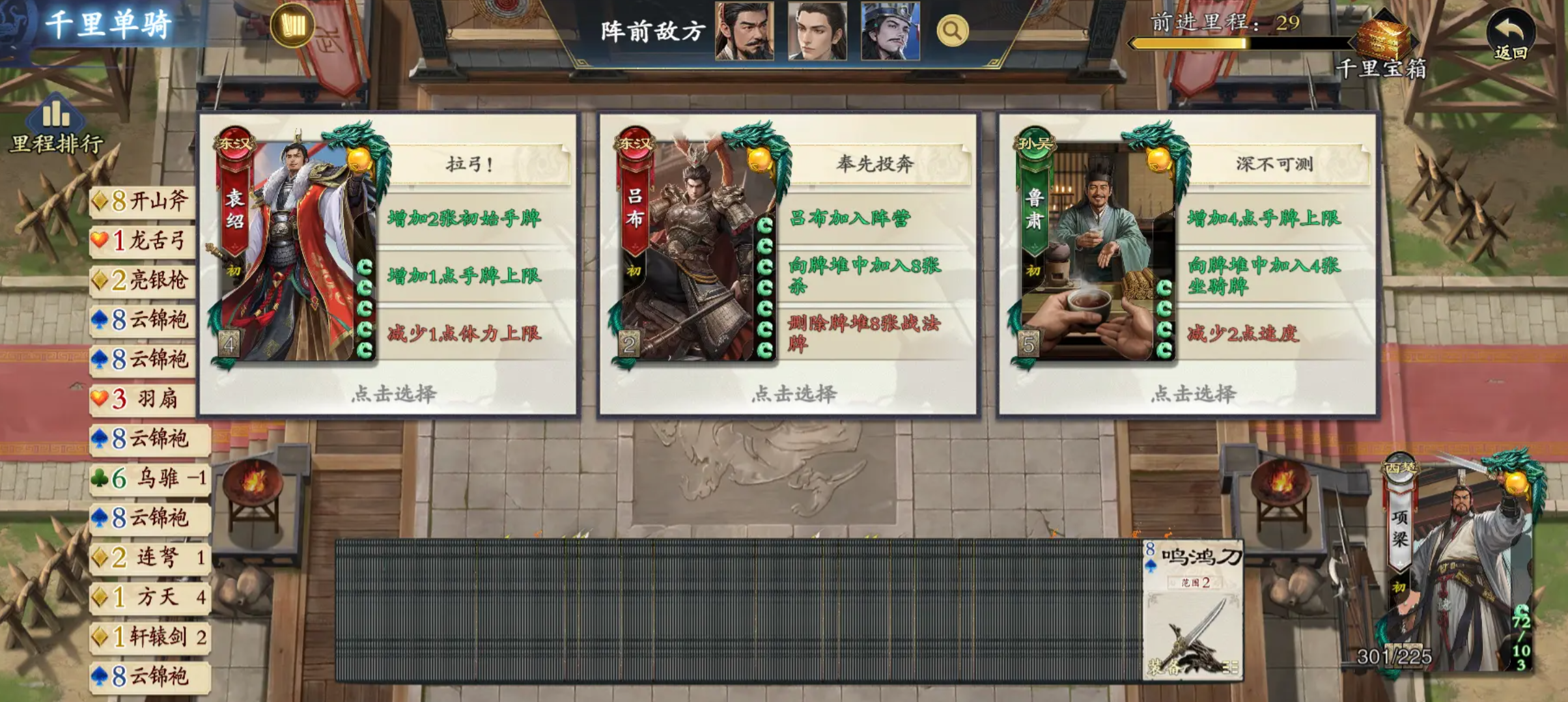 以上就是《名将杀》“千里单骑”战役模式的全部内容。这个模式并不只是一个人沿着地图跑一圈,更像是一段考验布局和长期规划的路程。玩家们既要考虑当前战斗的胜负,还要为以后的战斗做好准备。需要在有限的资源里学会取舍。