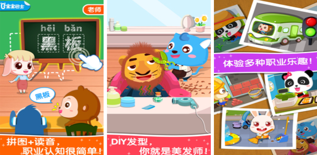 看名字就知道本作是帮助孩子认知各种职业的单机APP,理发师、交警和老师等超多职业统统包含,小朋友可尝试扮演各种职业去完成日常工作,很简单的职业认知玩法也有着不错的互动性,游戏中每一个汉字都贴心标注了拼音很容易看懂,多种多样的职业加持让宝宝感受到不同的乐趣,休闲轻松的气氛塑造也是儿童向手游标配,小朋友快来了解下每个职业的不同工作吧。